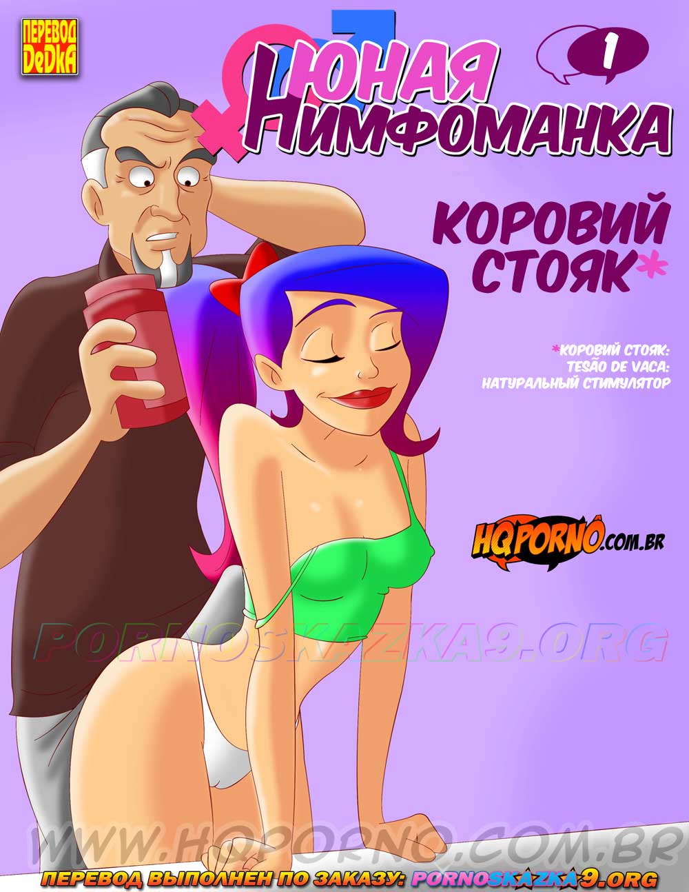 Порно комикс «Юная нимфоманка. Часть 1. Коровий стояк.» Отношения отца Малу с его женой складываются не лучшим образом, и у Малу появляется идея. Она с братом идут в секс-шоп и покупают знаменитый возбудитель «коровий стояк». Принимать нужно всего каплю, но Малу с Братом выливают в еду отца почти весь пузырек…